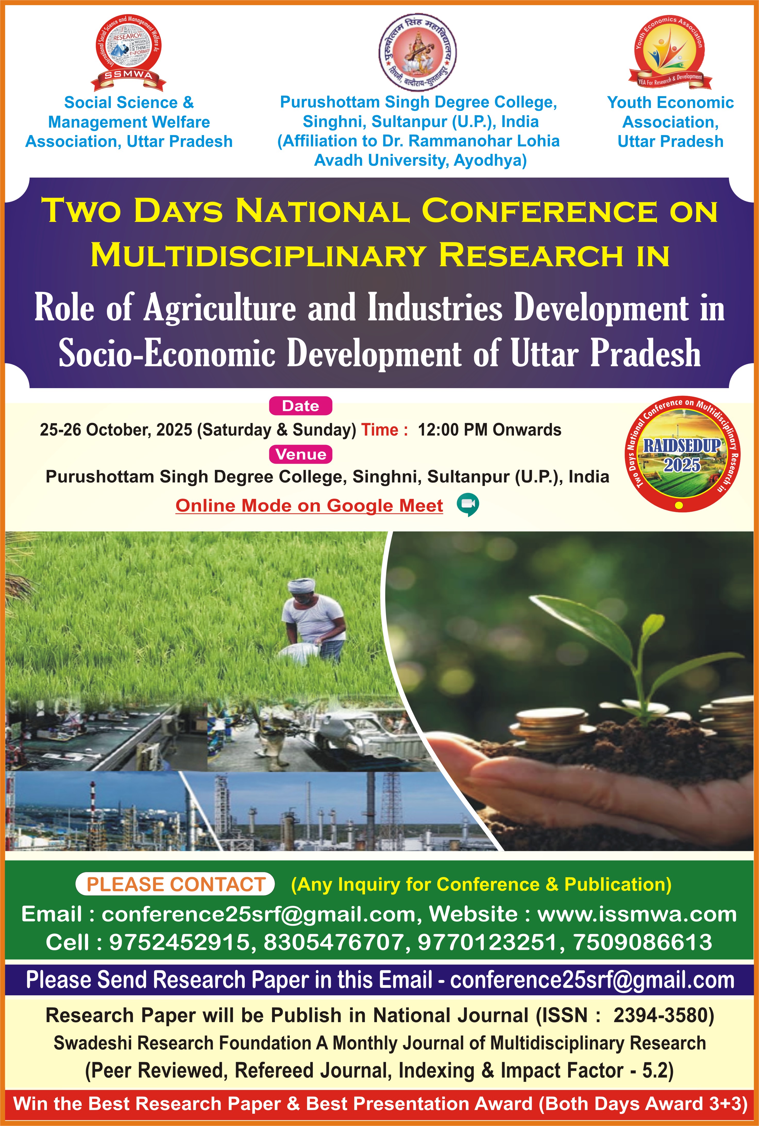 25-26 October, 2025 (Saturday & Sunday), Purushottam Singh Degree College, Sultanpur (U.P.), India (Online Mode on Google Meet) |